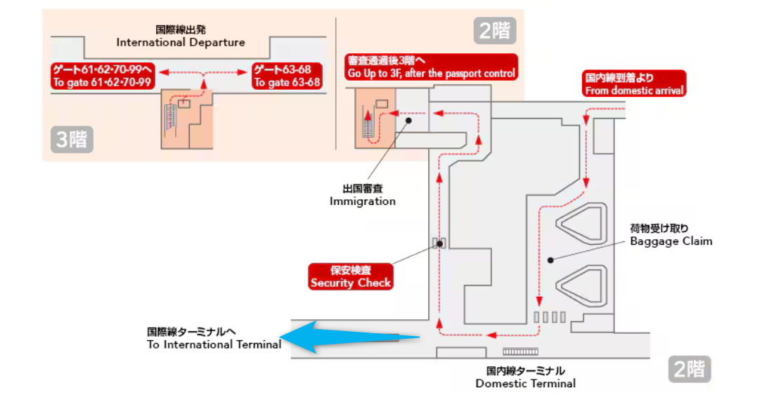 成田空港の国内線から国際線への乗り継ぎは初めてでした。