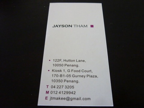 もらった名刺。このお店のです。知らなかったけど、ガーニーにもあるらしい。今度行ってみようっと。