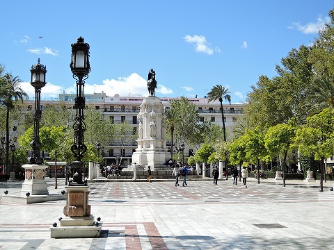 ヌエバ広場です。大きな騎馬像があり、ベンチもたくさんあります。