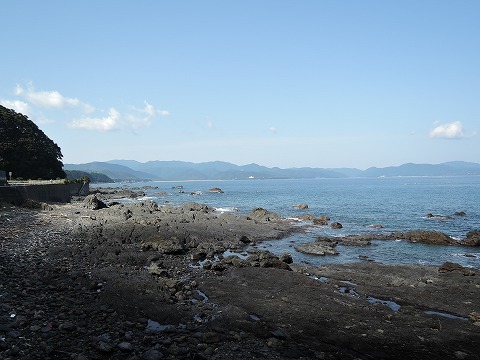 向こうに見える白い建物のところはサーフィンで有名な大岐の浜のようです。