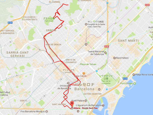 24番のバスのルートはこんな感じです。カサ・ミラとカサ・バトリョの前を通って行きます。