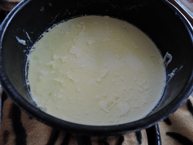 買ってきた牛乳を鍋で沸騰させます。2つの鍋でやりましたが、一個分は少し焦げてしまいました。。。