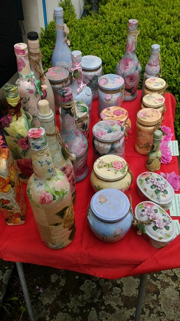 色々な瓶に薔薇の模様を施したものが飾ってありました。