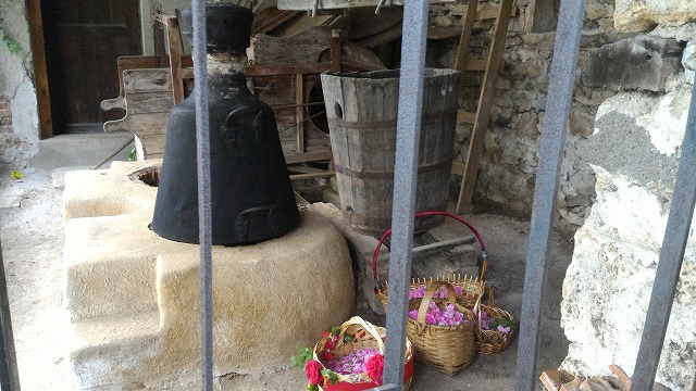 この小屋の中にはローズオイルを抽出する器具がありました。