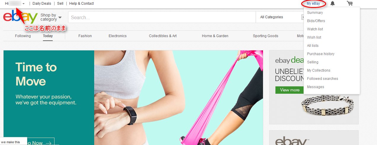 右の「My eBay」をクリックして