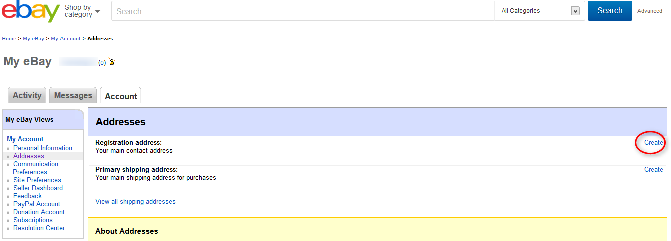 「My eBay」の「Address」をクリック