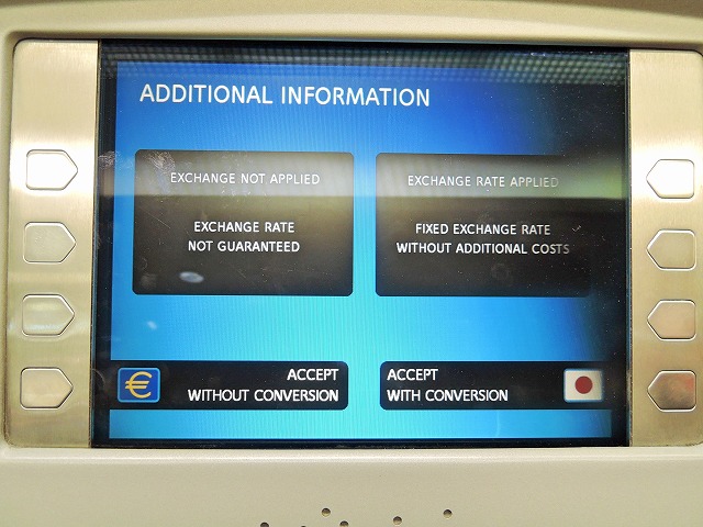 もし、このような画面が表示されたら必ずWITHOUT CONVERSION(この画像なら左)を選びましょう。
